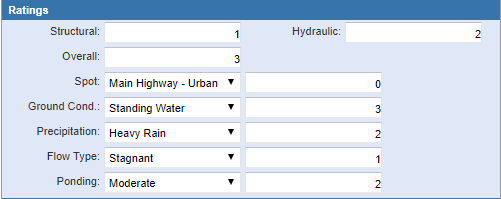 - Ponding and score: Select the ponding value. A score is assigned when the ponding value is selected. The contents of this list and scores are populated by the administrator in Designer under Preferences > Description Scores > SPONDCND.