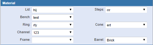 - Barrel: Select the barrel material. The contents of this list are populated by the administrator in Designer under Preferences > Custom Codes > SBRLMT.