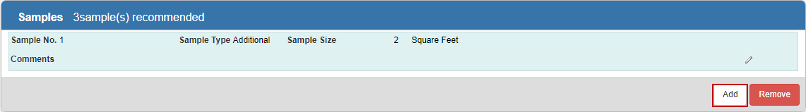 - Enter information to the Add Sample panel. See Pavement Inspection Fields for more information about the fields.